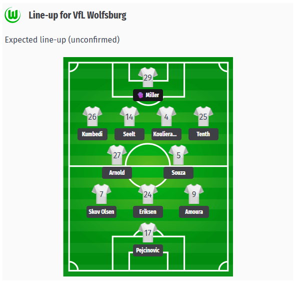 Η κατάσταση του προσωπικού παραμένει τεταμένη: Απουσιάζουν πολλοί βασικοί παίκτες, μεταξύ των οποίων ο τερματοφύλακας Grabara με προβλήματα στο μηρό, ο Joakim Maehle με τραυματισμό στον ώμο, καθώς και οι Wind και Lindstrøm. Επιπλέον, στην άμυνα δεν είναι διαθέσιμοι τέσσερις παίκτες: οι Vavro, Jenz, Fischer και Rogério. Η αναμενόμενη βασική διάταξη είναι 4-2-3-1. Στο τέρμα αναμένεται να αγωνιστεί ο Müller. Η τετράδα της άμυνας θα αποτελείται από τον Kumbedi στα δεξιά, τους Seelt και Koulierakis στο κέντρο και τον Zehnter στα αριστερά. Στο κεντρικό μέσο, ο αρχηγός Arnold και ο Vini Souza θα σχηματίσουν το αμυντικό δίδυμο. Την επιθετική τριάδα θα μπορούσαν να σχηματίσουν ο Skov Olsen στα δεξιά, ο Eriksen στο κέντρο μετά την ισχυρή του απόδοση εναντίον του HSV και ο Amoura στα αριστερά, με τον Amoura να βρίσκεται υπό ιδιαίτερη παρακολούθηση μετά τις δηλώσεις του προπονητή Simonis. Στο κέντρο της επίθεσης, ο Pejcinovic θα πρέπει να προτιμηθεί έναντι του Daghim.