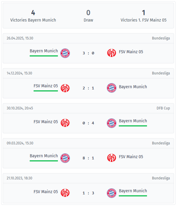 Μπάγερν – Μάιντς Άμεση σύγκριση & στατιστικά