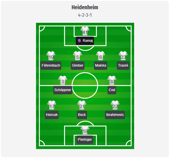 Ο Schmidt αναμένεται να διατηρήσει το 4 2 3 1, με τον Ramaj στο τέρμα και τετράδα με τους Föhrenbach, Gimber, Mainka και Traoré. Στο κέντρο του γηπέδου, το πιθανό δίδυμο είναι οι Schöppner και Dorsch, που θα πρέπει να διατηρήσουν τη συμπαγή άμυνα. Μπροστά τους, οι Honsak και Ibrahimovic μπορούν να επιτεθούν στα πλάγια, με τον Pieringer να παίζει ως επιθετικός.