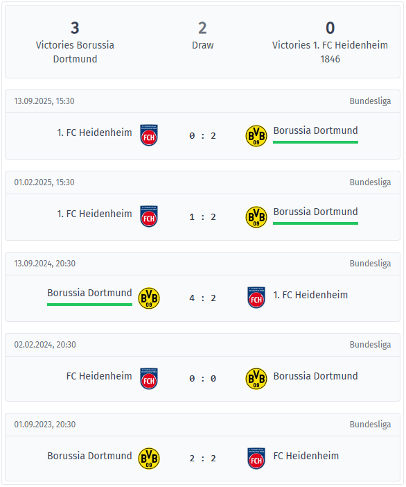 Ντόρτμουντ – Χάιντενχαϊμ Άμεση σύγκριση & στατιστικά