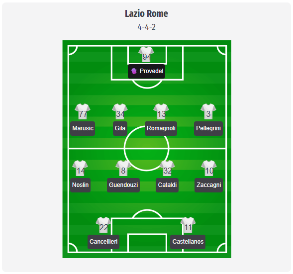 Περιμένω ότι η Λάτσιο θα αλλάξει το συνηθισμένο 4-3-3 σε 4-4-2. Η πρώτη μου πρόβλεψη έβλεπε τον Provedel πίσω από τους Marusic, Gila, Romagnoli και Pellegrini, με τους Zaccagni και Noslin στα πλάγια, τον Cataldi δίπλα στον Guendouzi και τον Cancellieri να υποστηρίζει τον Castellanos. Σύμφωνα με τις τελευταίες αναφορές, η κεντρική θέση φαίνεται πλέον πιο κατάλληλη για τον Vecino, αλλά η βασική διάταξη θα πρέπει να παραμείνει η ίδια. Ωστόσο, αυτό παραμένει μια πρόβλεψη. Υπάρχει έλλειψη προσωπικού στο κέντρο του γηπέδου, ο Rovella απουσιάζει, ο Dele-Bashiru και ο Dia συμμετέχουν στο Κύπελλο Αφρικής, οι αναφορές αποκλείουν τους Basic και Guendouzi, ενώ ο Isaksen συνεχίζει να αντιμετωπίζει προβλήματα στους προσαγωγούς μυς. Ο Gigot βρίσκεται σε πορεία ανάκαμψης, οπότε οι Gila και Romagnoli φαίνονται σίγουροι για τη θέση τους στην κεντρική άμυνα. Στην επίθεση, προτίμηση θα δοθεί στον Pedro ή ακόμα και στον Isaksen, ο οποίος δεν είναι σε πλήρη φόρμα.
