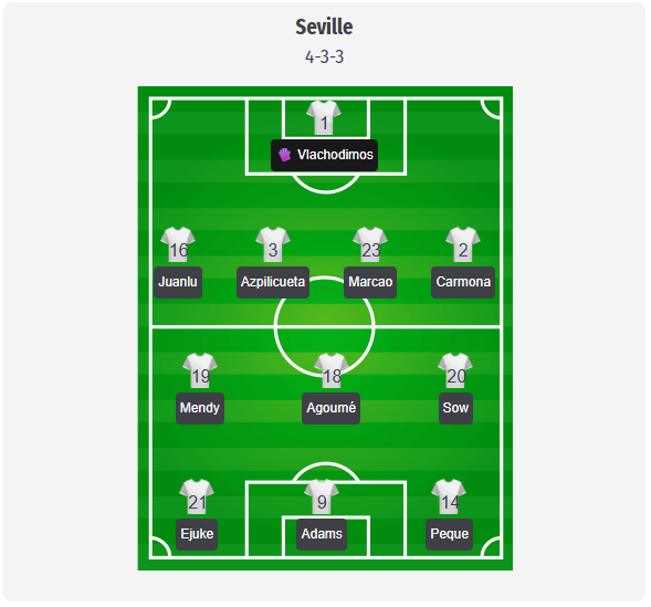 Ο προπονητής Matías Almeyda θα πρέπει να βασιστεί και πάλι σε τετράδα στην άμυνα, καθώς ο τραυματισμός του Suazo στον soleus μυ κάνει πολύ απίθανη την τριάδα στην άμυνα. Η θέση του αριστερού αμυντικού παραμένει το μεγαλύτερο πρόβλημα, εκεί θα βοηθήσει ο Carmona, ενώ ο Juanlu θα αμυνθεί στα δεξιά, στο κέντρο θα σχηματίσουν την εσωτερική άμυνα ο Azpilicueta, που είναι και πάλι σε φόρμα, και ο Marcão, μπροστά από τον τερματοφύλακα Vlachodimos. Μπροστά τους, στο αμυντικό κέντρο, οι Mendy, Agoumé και Sow θα πρέπει να περιορίσουν τους χώρους και να δυσκολέψουν την πρόσβαση της Betis στο κέντρο. Στην επίθεση, η απουσία του Vargas είναι σημαντική, οπότε ο Peque θα μπορούσε να ξεκινήσει αριστερά, ο Ejuke θα ήταν στη δεξιά πλευρά και ο Adams στο κέντρο της επίθεσης, με τον Isaac Romero ως εναλλακτική λύση για την κορυφή ή μια προσαρμογή του συστήματος. Ο Alexis Sánchez εξακολουθεί να είναι αβέβαιος, αλλά θα μπορούσε να παίξει ρόλο και στις δύο βασικές διατάξεις, είτε από την αρχή είτε ως επιλογή από τον πάγκο.