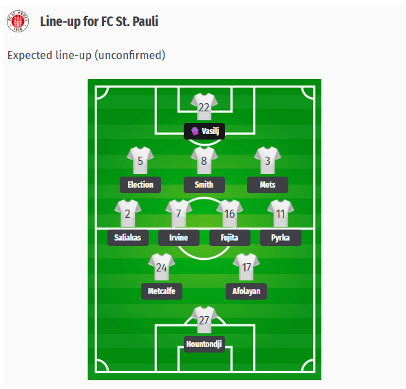 Ο προπονητής Alexander Blessin δεν αναμένεται να κάνει πολλές αλλαγές στο ρόστερ μετά τη δραματική νίκη στο κύπελλο εναντίον της Hoffenheim και θα βασιστεί και πάλι στη συνηθισμένη του διάταξη 3-4-2-1. Ο Vasilj θα υπερασπιστεί την εστία παρά το λάθος του στο τελευταίο ματς στη Φρανκφούρτη, ενώ η τριάδα των Wahl, Smith και Mets φαίνεται να είναι σίγουρη.