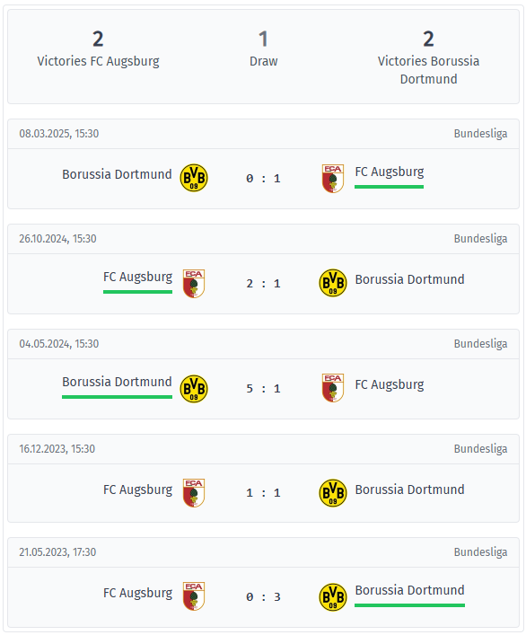 Augsburg – Dortmund Head-to-head comparison & statistics