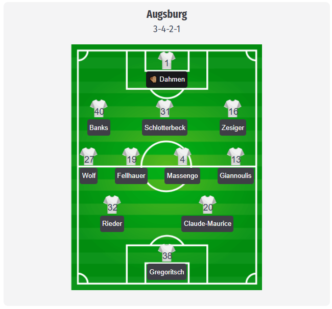 Baum is likely to stick with his pragmatic 3-4-2-1 formation, with Dahmen in goal and a makeshift back three of Banks, Schlotterbeck, and Zesiger. With Matsima and Gouweleeuw still out, Augsburg could opt for a deep block and then switch quickly to the wings, where Wolf and Giannoulis are the most likely candidates for the starting lineup.
