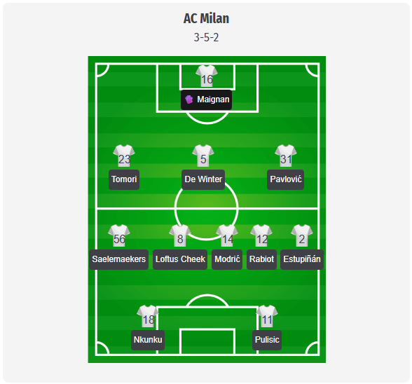AC Milan are expected to stick with Allegri’s now familiar 3-5-2 from our predicted line-up, with Maignan behind Tomori, De Winter, and Pavlović. Saelemaekers and Estupiñán are expected to provide width on the flanks, while Modric, Rabiot, and Loftus-Cheek form a highly technical midfield core. Nkunku and Pulisic are expected to start up front again, offering plenty of movement between the lines instead of a classic center forward, with transfer rumors surrounding Nkunku doing nothing to change that. However, this remains a predicted lineup and not a confirmed team, as Allegri could still make changes. Gimenez is still unavailable after ankle surgery, so there is no natural penalty area striker in the predicted team. Leão is listed as doubtful in recent reports, which suggests he will come off the bench, while Fofana or Ricci are considered the most straightforward options in midfield if adjustments are needed.