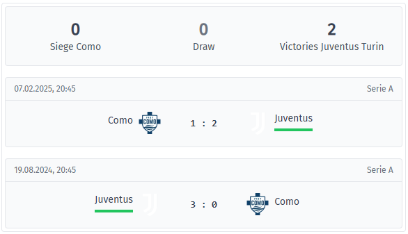 The record between Como and Juventus is clear: Juventus won both previous encounters this season, first by a clear 3-0 margin in August 2024, then by a narrower 2-1 margin in February 2025. Como is still waiting for its first point against the Turin side. Both games followed a similar pattern: Juventus laid the foundation for victory in the first half, while the second halves remained low-scoring as Como struggled to find the net again. Overall, Como scored only once in the two encounters, while Juventus scored five goals. Como’s defense came under pressure in both games and conceded goals in both halves. Cesc Fàbregas and his team must try to break this recognizable pattern tomorrow, prevent early goals more effectively, be more offensive and determined in the second halves, and stabilize their defense in order to earn points against Juventus for the first time.
