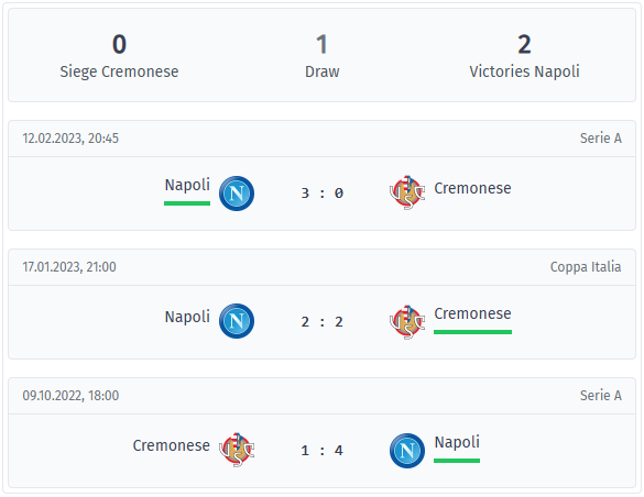In the last three head-to-head matches, Napoli has mostly had the upper hand. In Serie A, the southern Italians won both games, 4-1 in Cremona in 2022 and 3-0 at home in 2023, while Cremonese celebrated their only success in this period in the round of 16 of the Coppa Italia in 2023, when they advanced after a 2-2 draw on penalties. Overall, Napoli leads these three encounters 9-3 on aggregate, with more than 2.5 goals scored in each game. Napoli scored in all three matches, Cremonese failed to score only in the last league game, and in two of the encounters there were at least four goals, which suggests that these are open and relatively high-scoring games. The early stages were strikingly one-sided, with Napoli winning the first half in all three games, Cremonese trailing at the break each time and conceding at least one goal in each first half, underlining the pattern that falling behind early has become a recurring theme. At the same time, the clear distinction between league and cup shows that Napoli did not drop a point against Cremonese in Serie A during this period and scored at least three goals in each game, while the Coppa Italia match in 2023 proved that Cremonese can certainly keep up over 90 minutes, even if it ultimately had to be decided on penalties. Against this backdrop, Conte can approach the game with a certain degree of confidence that his team can control the game early on, while Nicola is likely to try to stabilize the vulnerable first half. The statistics point to another game with goals, even if the cup upset remains in the back of the mind as a reminder that Cremonese is quite capable of upsetting the expected order of play.