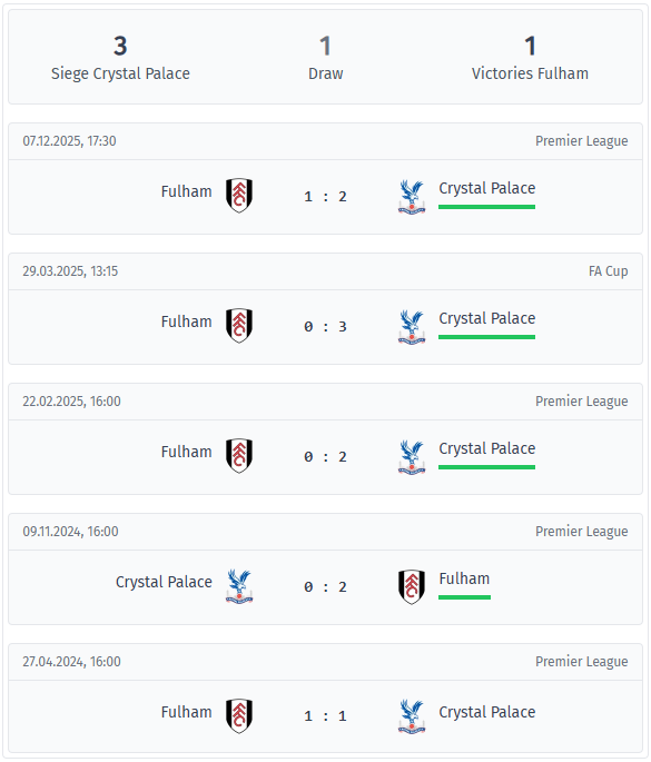 Crystal Palace – Fulham Head-to-Head & Statistics
