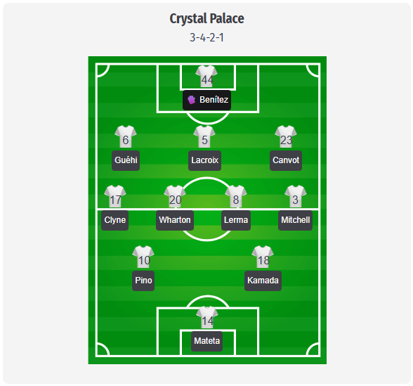 My predicted Palace starting eleven leaves Oliver Glasner’s familiar 3-4-2-1 unchanged, with Benítez likely to start in goal again, Guéhi marshaling a back three that once again includes Lacroix and Canvot, Clyne and Mitchell operating as aggressive wingbacks, while Wharton and Lerma control the center. In our earlier prediction, Pino and Kamada supported Mateta, providing fluid movement between the lines behind a physically dominant number nine, but current team news makes parts of this framework uncertain. Kamada and Muñoz are listed as injured, Sarr is with Senegal at the AFCON, Richards and Riad are still missing in central defense, and Doucouré is still missing in midfield. This makes Pino even more important between the lines, and it could be that Hughes or Esse take Kamada’s place behind Mateta, with Clyne still a very likely starter at right wingback.