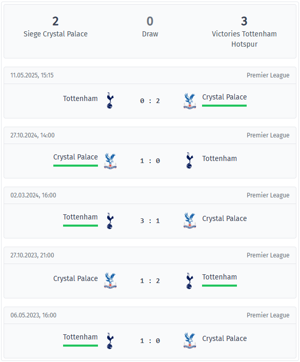 Crystal Palace – Tottenham Head-to-Head Comparison & Statistics