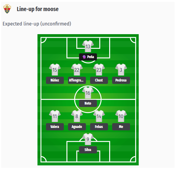 Elche has picked up just one point from a possible twelve in its last four league games. The 3-1 defeat in Barcelona is symptomatic of this phase: two early goals conceded, a temporary goal from Rafa Mir, but no turnaround in the second half when Marcus Rashford sealed the deal. The situation is further exacerbated by personnel issues: Martim Neto had to be substituted at halftime due to injury, and captain Pedro Bigas also left the game injured and is expected to miss the match against Real Sociedad after being unable to train with the team this week. As the promoted team with the smallest budget in the league, a weaker phase is not entirely surprising. Despite the results, Elche remains in 9th place, five points above the relegation zone. In the cup, Elche recently won 4-0 against fourth-division side Los Garres, which should boost their confidence. It is also noteworthy that Elche have conceded relatively few goals in the second half of their last eight league games, a positive tactical pattern that offers signs of stability.