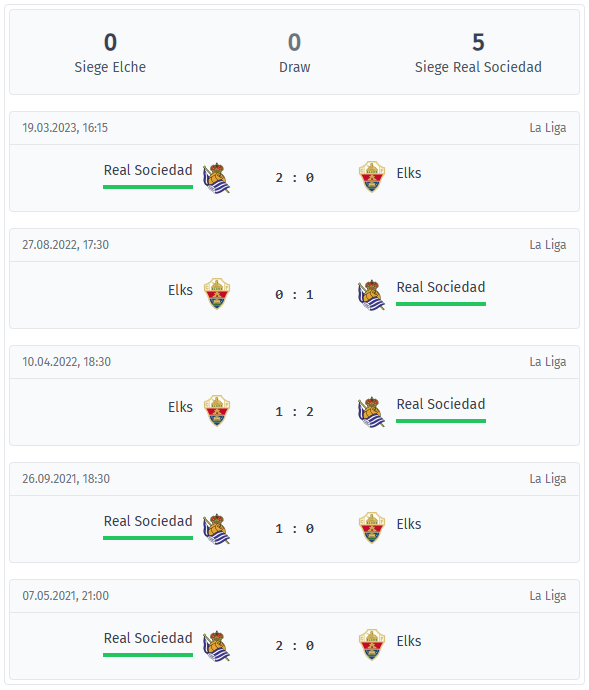 The record is clear: Real Sociedad have won the last five matches against Elche by at least one goal, with Elche failing to pick up a single point in that run. The most recent meeting in March 2023 ended 2-0 to Real Sociedad, while in August 2022 the Basques won 1-0 at the Estadio Martínez Valero. Four of the five games were low-scoring with a maximum of two goals. Real’s goals were mostly scored in the second half, while Elche failed to score after the break in these five encounters. The series of five defeats is likely to be mentally taxing for Elche, even if some of the matches date back to when Elche was still playing in the Primera División. However, Real Sociedad’s dominance is clear to see. Statistically and historically, Real Sociedad has the upper hand, but Elche will probably try to make amends this time for reasons of pressure and image.
