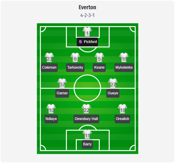 Everton are in 11th place after twelve matchdays with 18 points, level on points with Manchester United directly above them and Liverpool directly behind them. Their recent record of two wins, one draw, and two defeats from their last five games looks solid overall. The 1-0 away win at Manchester United was outstanding, Moyes’ first success at Old Trafford in 18 attempts, with Everton remaining defensively stable despite Idrissa Gueye’s early red card in the 13th minute and Dewsbury-Hall scoring the decisive goal in the 29th minute after Garner’s assist. Everton had previously won 2-0 at home against Fulham and drawn 1-1 away at Sunderland. The clear defeats, 3-0 against Tottenham and 2-0 against Manchester City, were not entirely surprising given the opponents, but the home defeat against Spurs was nevertheless disappointing. In four of the last five games, there have been more than 1.5 goals in total, but individual halves have been remarkably low-scoring, which fits well with Everton’s more results-oriented style of play. The team plays compactly, is defensively disciplined, and regularly relies on strong saves from Jordan Pickford, but has conceded goals in three consecutive games, often in the second half, while the offense has limited resources but finds solutions at key moments. In terms of personnel, center back Jarrad Branthwaite is out with a thigh injury until the end of January, Nathan Patterson is expected back in early December, Merlin Röhl around Christmas, and Séamus Coleman recently had to be substituted after just ten minutes, but overall the defense remains stable. Under David Moyes, Everton has a clear identity: the team is well organized, difficult to break down, and combative. The results are usually close, reinforcing the impression of a solid team in a secure mid-table position.