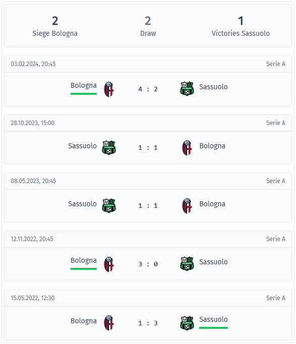 FC Bologna – Sassuolo Head-to-Head & Statistics