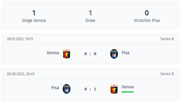 Genoa – Pisa Head-to-Head & Statistics