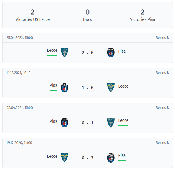 Lecce – Pisa Head-to-Head & Statistics