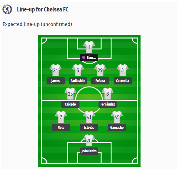 Maresca will watch the game from the stands after being suspended for his celebrations against Liverpool. Chelsea are expected to line up in a 4-2-3-1 formation. Chalobah returns to central defense after serving his suspension, Fofana is expected to be fit again after his concussion, and Adarabioyo could return to the squad after calf problems. Colwill is out long term with a cruciate ligament rupture and is not expected to return until spring 2026. Palmer remains sidelined in midfield with a groin injury, while Essugo is unlikely to be available until 2026 following thigh surgery.