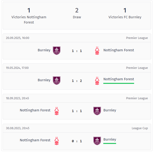 - Forest has conceded just one goal in its last five league matches, highlighting its defensive solidity—an advantage against a Burnley side lacking reliable finishing.