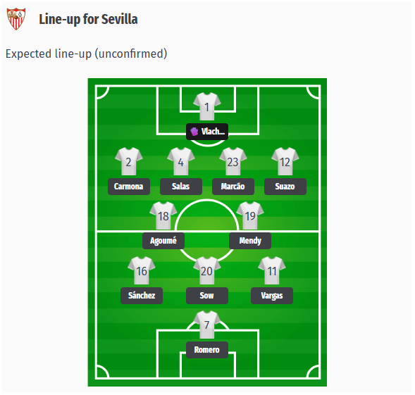 Agoumé and Mendy are expected to form the double six. In front of them, Juanlu, Sow, and Vargas could provide creativity, with Romero occupying the striker position. Gudelj, whose contract expires in the summer and whose departure is the subject of speculation, is expected to start on the bench.