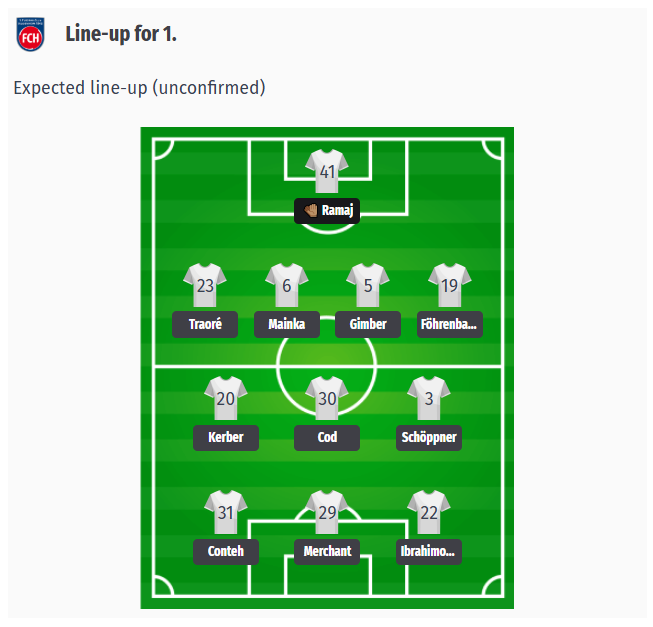 After four defeats so far, Frank Schmidt is likely to rely on the tried-and-tested 4-3-3 formation that was already used against HSV. Ramaj will be between the posts, while the back four could consist of Traoré, Mainka, Gimber, and Föhrenbach.