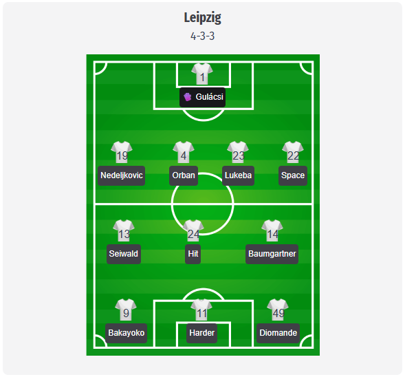 Leipzig are expected to stick with a 4-3-3 formation under Ole Werner, with Gulácsi in goal behind a back four of Nedeljkovic, Orban, Lukeba, and Raum. In our predicted line-up, Seiwald anchors the midfield, flanked by Schlager and Baumgartner, which should give the full-backs enough stability to push forward boldly. but this remains a projected lineup and not an official club announcement. In attack, we see Bakayoko and Diomande wide around Harder, which would once again place a lot of finishing responsibility on Diomande after his recent hat trick and the transfer rumors surrounding him. With Nusa and Werner out, Baku and Henrichs missing on the right and Bitshiabu not fully fit, Leipzig are short on options, so Kampl’s special leave further limits Werner’s flexibility.