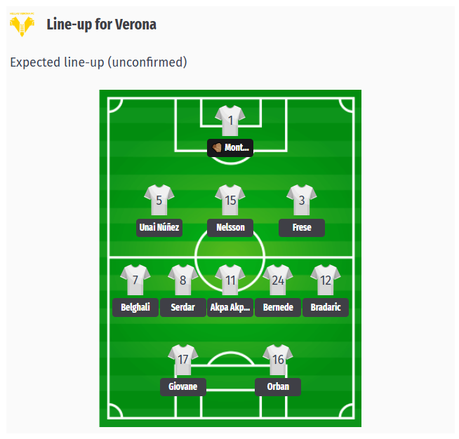Coach Paolo Zanetti is likely to field his team in the usual 3-5-2 formation. Montipò is expected to start in goal, while the back three could consist of Unai Núñez, Nelsson, and Frese. Important players are still missing in midfield: Suslov is out for a long time with a cruciate ligament rupture, while Valentini is unavailable due to a thigh injury. This could give Serdar and Akpa Akpro more responsibility in the center, flanked by Belghali and Bernede, with Bradarić likely to take over on the left wing. In attack, the duo of Giovane and Orban are likely to be preferred, with Orban scoring in the last game against Roma, although the goal was disallowed after a VAR decision for handball, while Mosquera remains unavailable after his appendectomy.