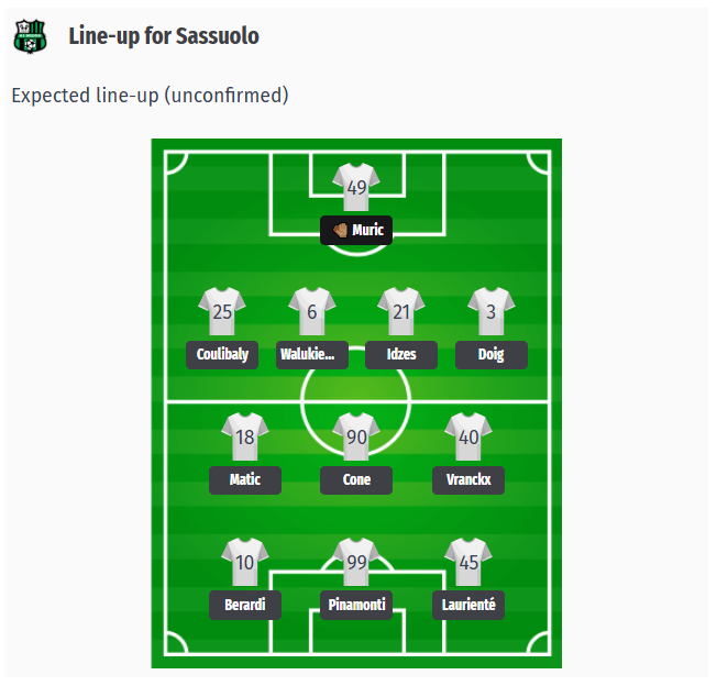 Coach Fabio Grosso is likely to stick with Sassuolo’s tried-and-tested 4-3-3 system, which proved successful in the 3-1 win against Udinese. Muric could be preferred to Turati in goal, while the defensive line of Coulibaly, Walukiewicz, Idzes, and Doig should provide a solid foundation. In midfield, the trio of experienced Matic, Kone, and Vranckx is an option, with Kone likely to have gained confidence after his goal against Udinese. In attack, Berardi could play on the right, while Laurienté is likely to start after his strong performance with a goal and an assist, and Pinamonti would occupy the center forward position, although Paz is still out with a calf injury.