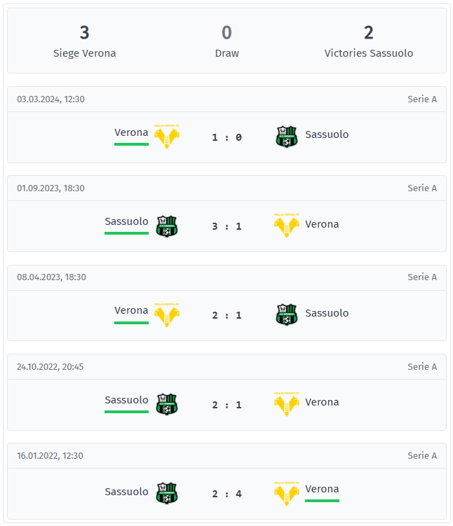 H2H Verona – Sassuolo Head-to-head comparison & statistics
