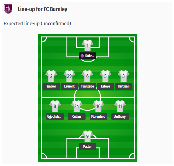 With the current personnel problems, Burnley is in danger of remaining in the relegation zone if they cannot stop conceding early goals. Every point is particularly valuable now. If the defense becomes more stable in the short term and Dúbravka continues to perform well, at least points against direct competitors are realistic.