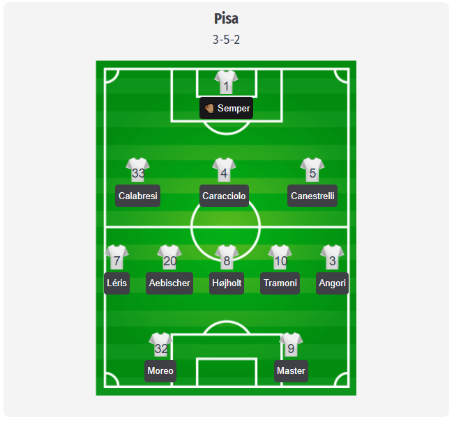 Pisa vine după o înfrângere acasă cu 0-1 împotriva lui Torino, care s-a decis abia în minutul 80, dar care, în esență, nu a fost o surpriză. Oaspeții au ținut mult timp pasul, apoi au pierdut momentul decisiv și au oferit prea puțin în ofensivă. Echipa lui Oscar Hiljemark se află astfel într-o perioadă de secetă ofensivă de două meciuri, iar în fiecare dintre ultimele cinci partide de campionat a primit gol, de fiecare dată în cel mai nepotrivit moment.
