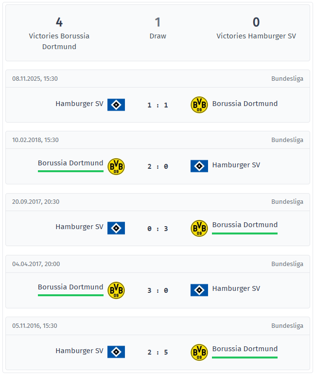 Dortmund – HSV Comparație directă & statistici