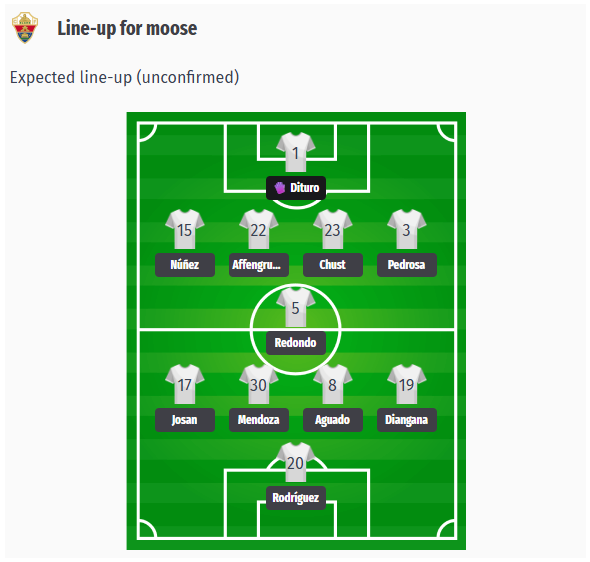Antrenorul Eder Sarabia ar trebui să înceapă cu sistemul 4-1-4-1, cu Dituro în poartă. În linia de patru fundași vor juca probabil Núñez ca fundaș dreapta, Affengruber și Chust în centrul apărării, precum și Pedrosa pe stânga, în fața lor Redondo va juca ca singurul mijlocaș defensiv și centru de comandă în mijlocul terenului.