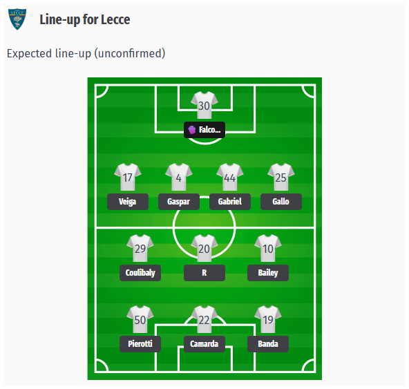 Antrenorul Di Francesco va reveni probabil la sistemul 4-3-3 după înfrângerea târzie de la Udine. Tânărul jucător împrumutat Camarda ar putea prelua rolul central în atac, iar Pierotti și Banda ar putea ocupa pozițiile laterale. La mijlocul terenului se așteaptă trio-ul Coulibaly, Ramadani și Berisha, Berisha fiind în formă bună și marcând din lovitură liberă împotriva lui Udinese. În apărare, Gabriel și Gaspar vor forma probabil duo-ul de fundași centrali, deoarece Jean și Pérez sunt accidentați. Marchwinski nu va fi disponibil din motive de sănătate. Falcone este așteptat între buturi.