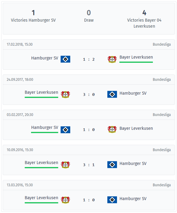 HSV – Leverkusen Comparație directă și statistici